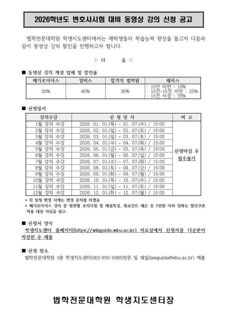 2026학년도 변호사시험 대비 동영상 강의 신청 공고