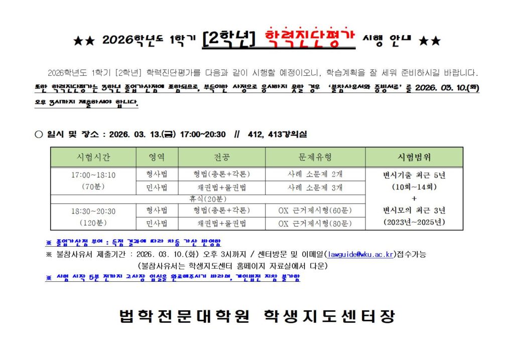 공지사항 홈공지사항공지사항 [일정 확정] 2026학년도 1학기 2학년 학력진단평가 시행 안내 [일정 확정] 2026학년도 1학기 2학년 학력진단평가 시행 안내 학생지도센터2026-03-05 페이스북 트위터 구글플러스 이메일 프린트 이전공지사항다음